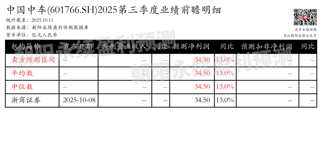 截至2025年10月11日,根据朝阳永续季度业绩前瞻数据: